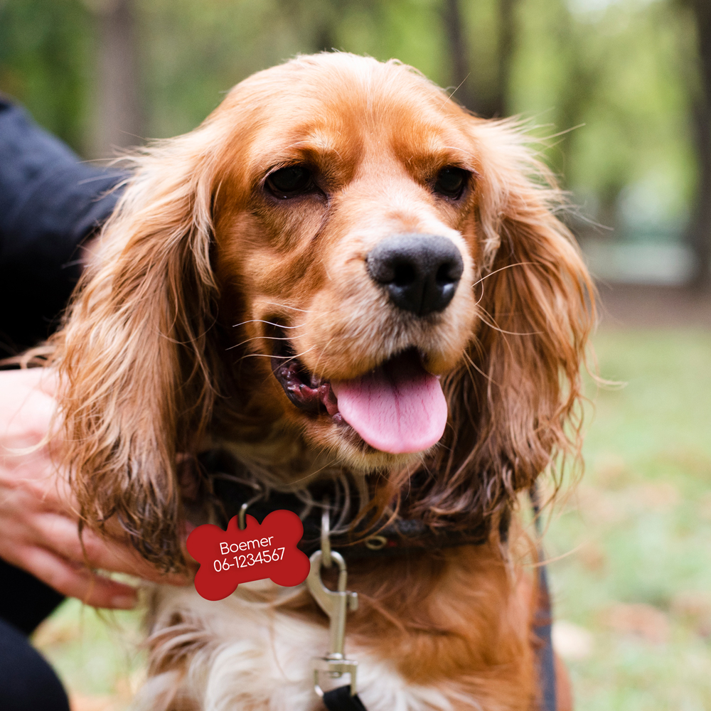 Hondenpenning bot klein rood. Formaat 31x21mm.