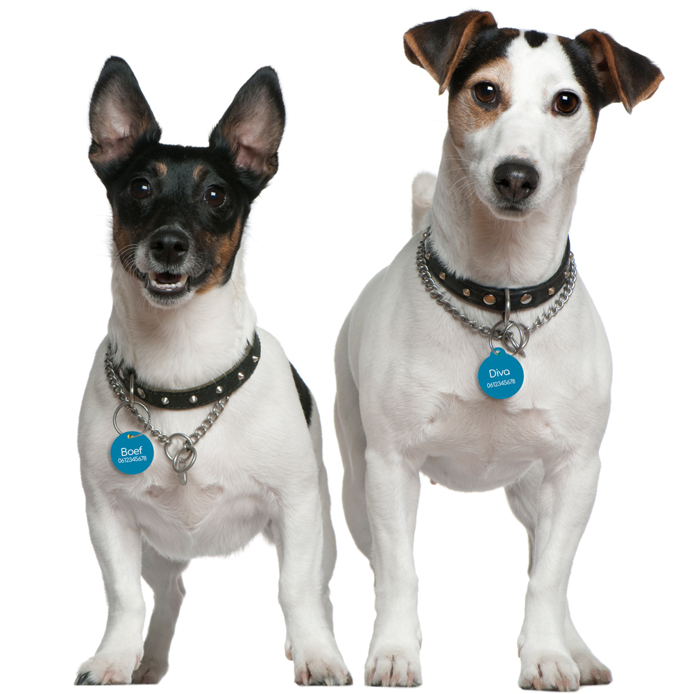 Hondenpenning in ronde vorm met lusje waarop jij zelf het ontwerp plaatst. Hoe? Dit doe je eenvoudig in onze online ontwerptool. Deze aluminium plaatjes worden gegraveerd, hierdoor zal het uiteindelijke resultaat van het ontwerp altijd de kleur wit hebben. Deze witte kleur kan iets afwijken van de foto.