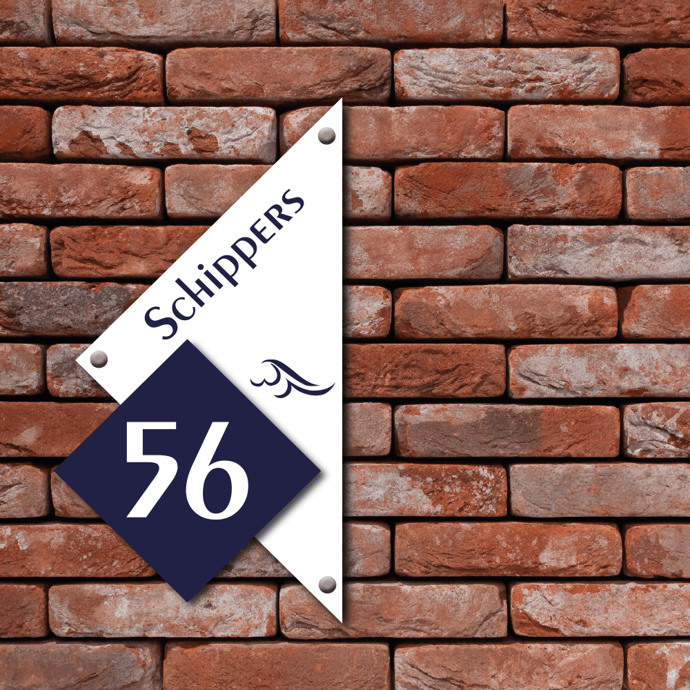 Op zoek naar een leuke blikvanger voor bij de deurpost van uw woning? Overweeg is een trendy naambordje. Mede dankzij zijn unieke vorm en leuke kleurencombi wekt hij de aandacht en is het een mooie toevoeging. De kleuren van dit naambordje zijn blauw/wit.