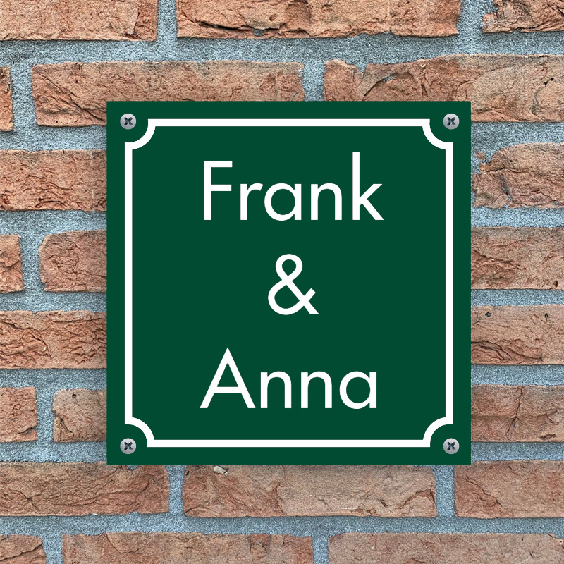 Door de glanzende toplaag, wordt een klassieke en nostalgische uitstraling verkregen. Doordat er kleine verzonken schroefgaten in het naambord van 12x12cm zijn aangebracht, zijn de meegeleverde bevestigingsschroeven nauwelijks zichtbaar. Alle benodigde bevestigingsmaterialen (muurpluggen en schroeven) worden meegeleverd.