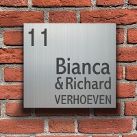 Naambordje van RVS-look met of zonder extra huisnummer. Ontwerp hier je naambordje en bestel! Wij versturen dezelfde (werk)dag en leveren portvrij.