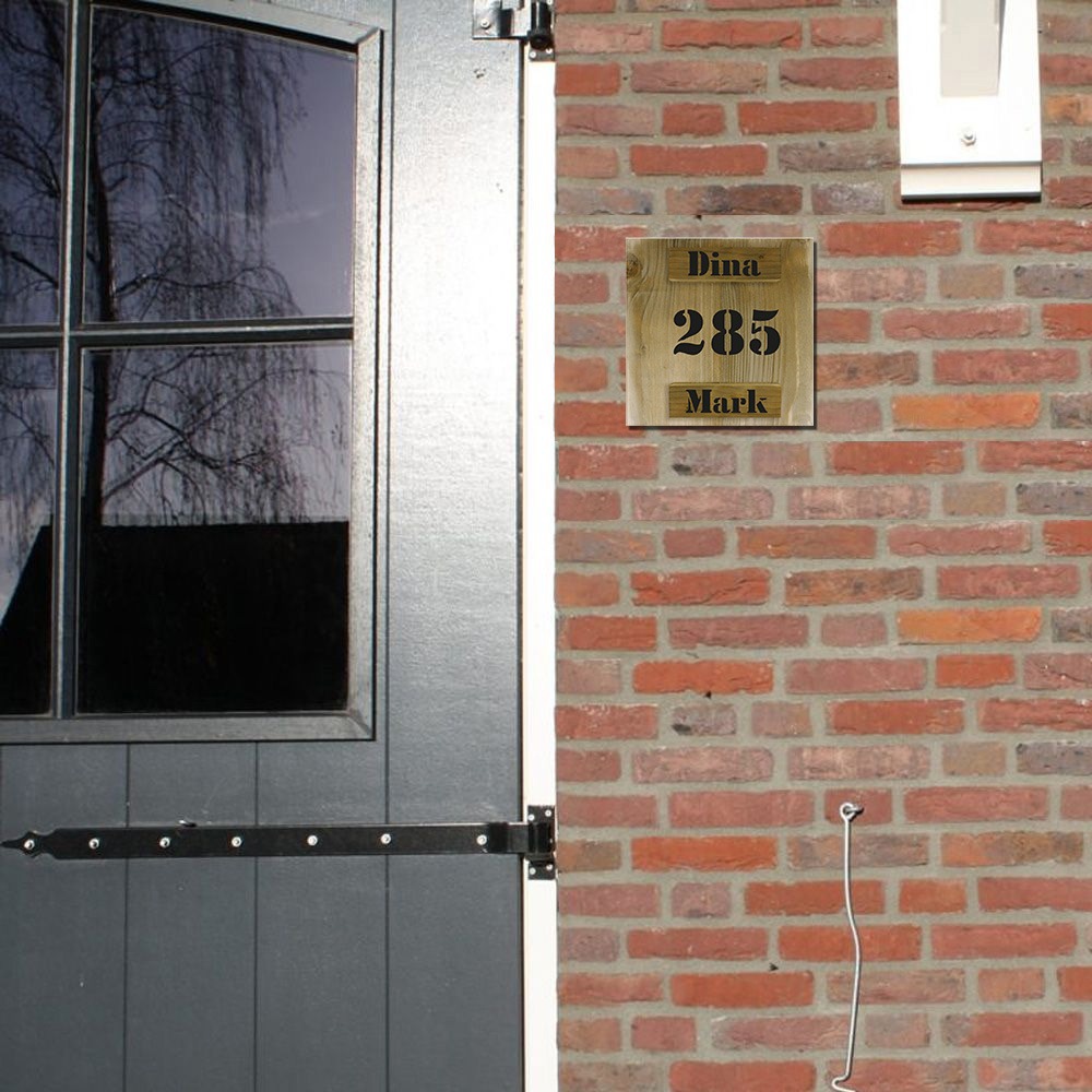 Naambordje van steigerhout met een trendy uitstraling. Formaat 20x20 cm