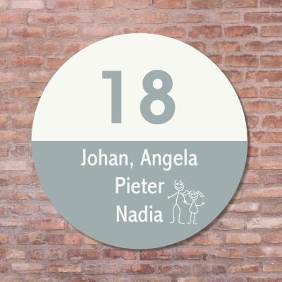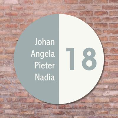 Kies uit stijlvolle kleuren zoals groen, blauw, oud roze of aardetint, en selecteer het formaat dat bij jouw voordeur past: Ø20 cm, Ø30 cm of Ø40 cm. Met onze gebruiksvriendelijke online ontwerptool creëer je in slechts enkele minuten een naambord dat perfect bij jouw stijl en huis past.